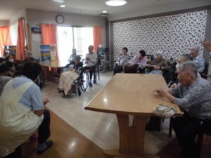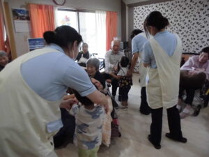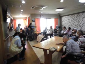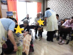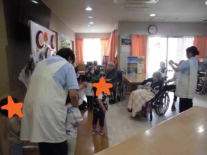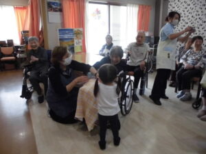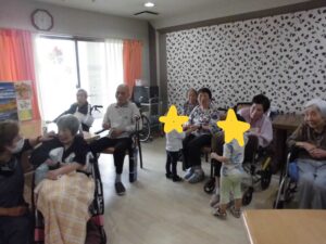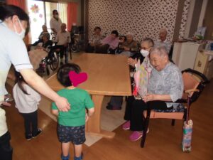 介護付き有料老人ホーム太陽2025年9月16日かわいいお客さん今年もかわいいお客さま ニチイキッズ茶屋町小規模保育園の皆さんが太陽に! 毎年、元気な笑顔に皆さんニコニコです 今回もたくさん元気を頂きました! 園児の皆さん、先生、いつもありがとうございます!