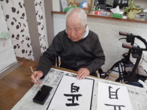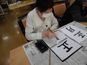 太陽ではお正月の定番、書初めです