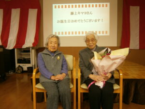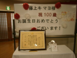 100歳を迎えられたご利用者さまのお祝いの会を行いました