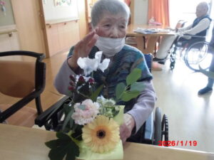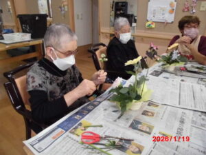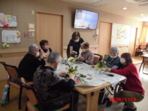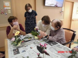 新年も皆さん、お楽しみのフラワーアレンジ教室です